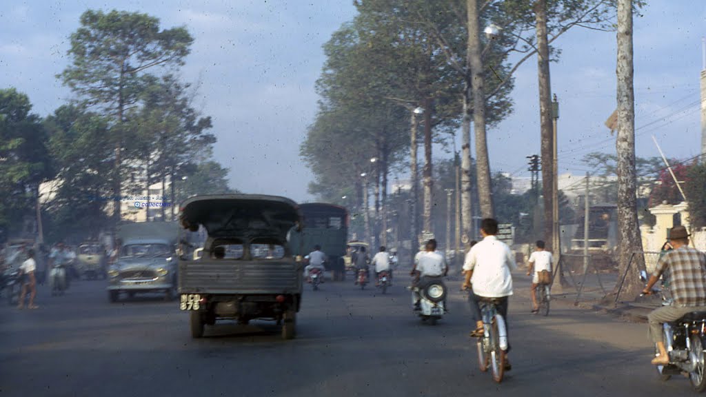 Gần ngã tư Trần Hưng Đạo- Cộng Hòa (Nguyễn Văn Cừ), phía bên phải nhìn thấy các ống khói của Nhà máy điện Chợ Quán