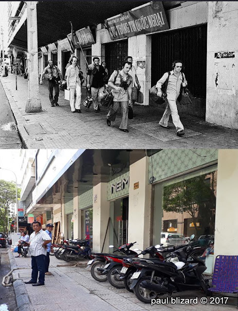1297. Vị trí các ký giả ngoại quốc rời Sài Gòn ngày 29/4/1975 tại góc Tự Do - Thái Lập Thành và giờ đây.